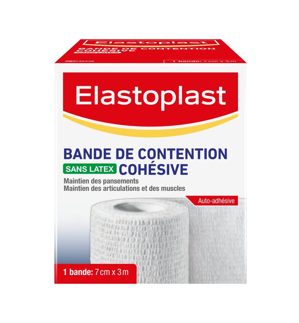 La bande de contention cohésive Elastoplast permet un soutien et une contention des articulations et des muscles. Elle s'utilise également pour maintenir fermement les compresses. Elle adhère sur elle-même sans coller à la peau ni aux poils et est très flexible. Elle est résistante à l'eau et est fabriquée sans latex de caoutchouc naturel.