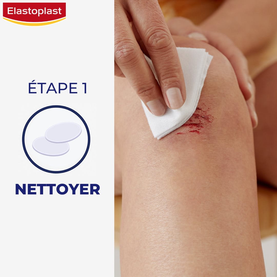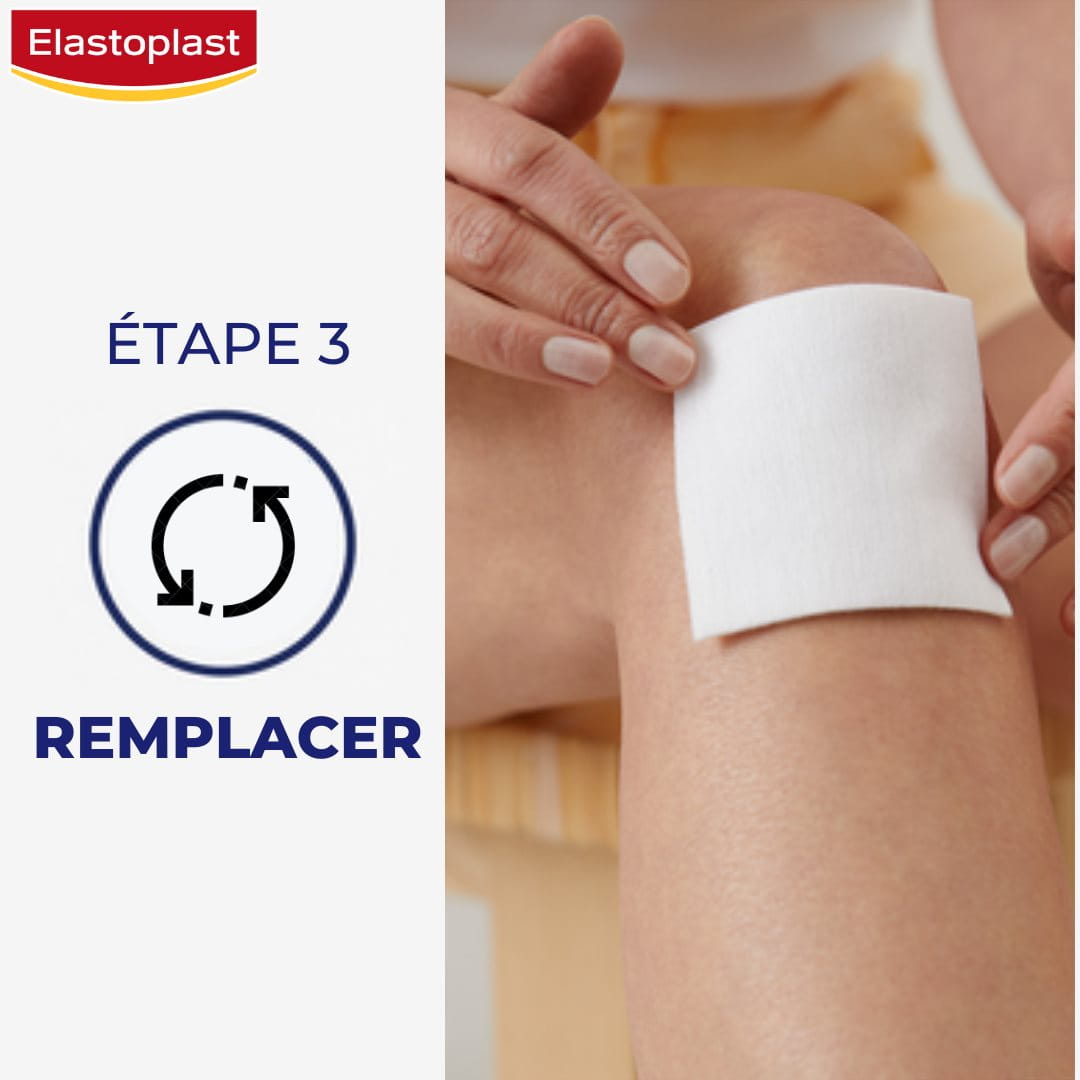 Appliquez la compresse sur la plaie puis la fixer à l'aide d'un sparadrap.